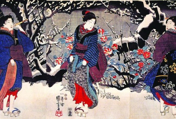 Treizeci de tripticuri, dintr-o serie de 32, alcatuiesc o serie faimoasa: “Chiyoda no on- omote” (Scene din afara Palatului Chiyoda), opera de maturitate, grava si asezata, a unui artist reprezentativ pentru epoca Meiji: Toyohara Chikanobu.Gravuri japoneze inedite, din epoca Meiji, ne invita intr-o calatorie insolita la curtea shogunala. De Madalina Mirea